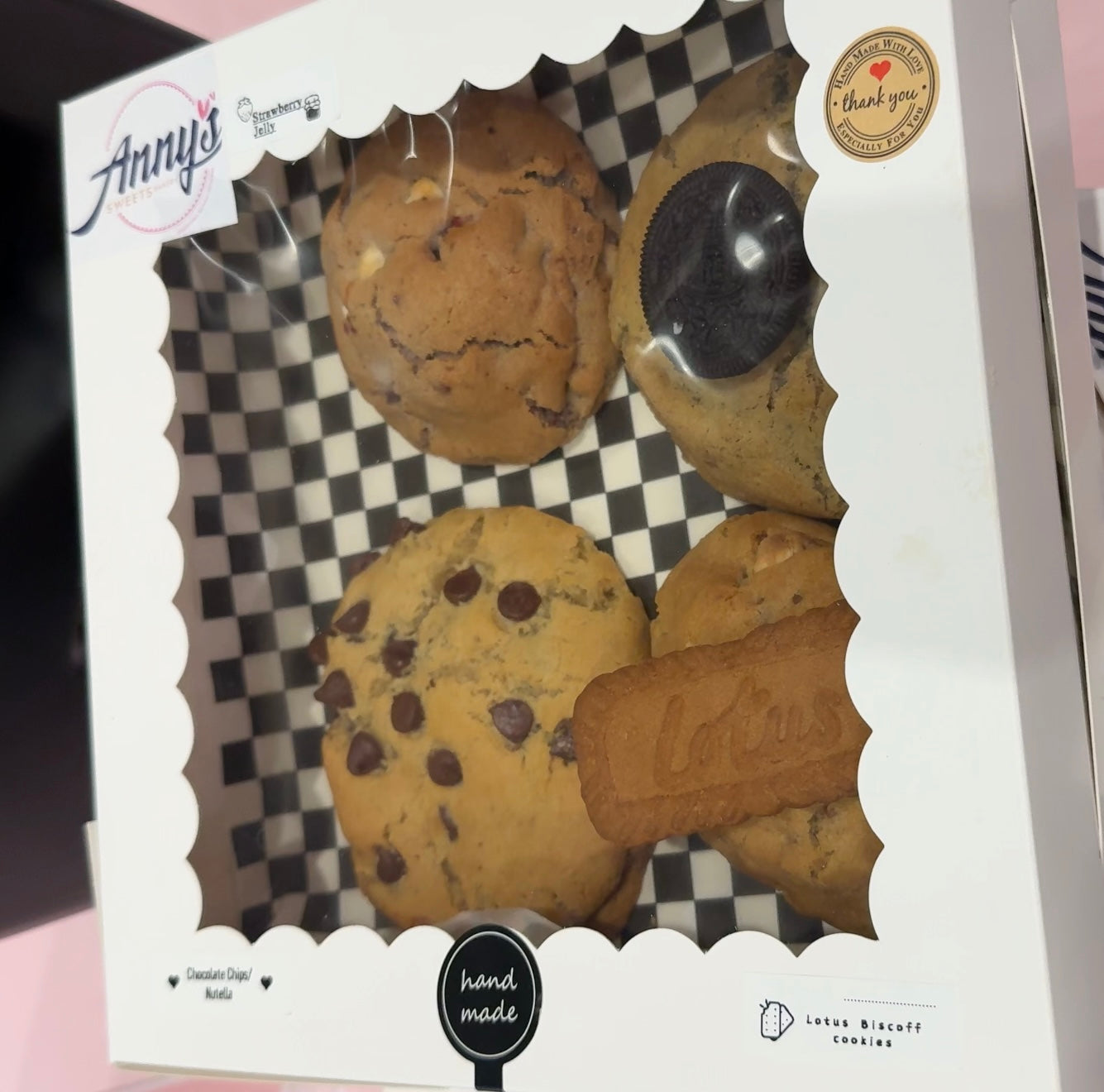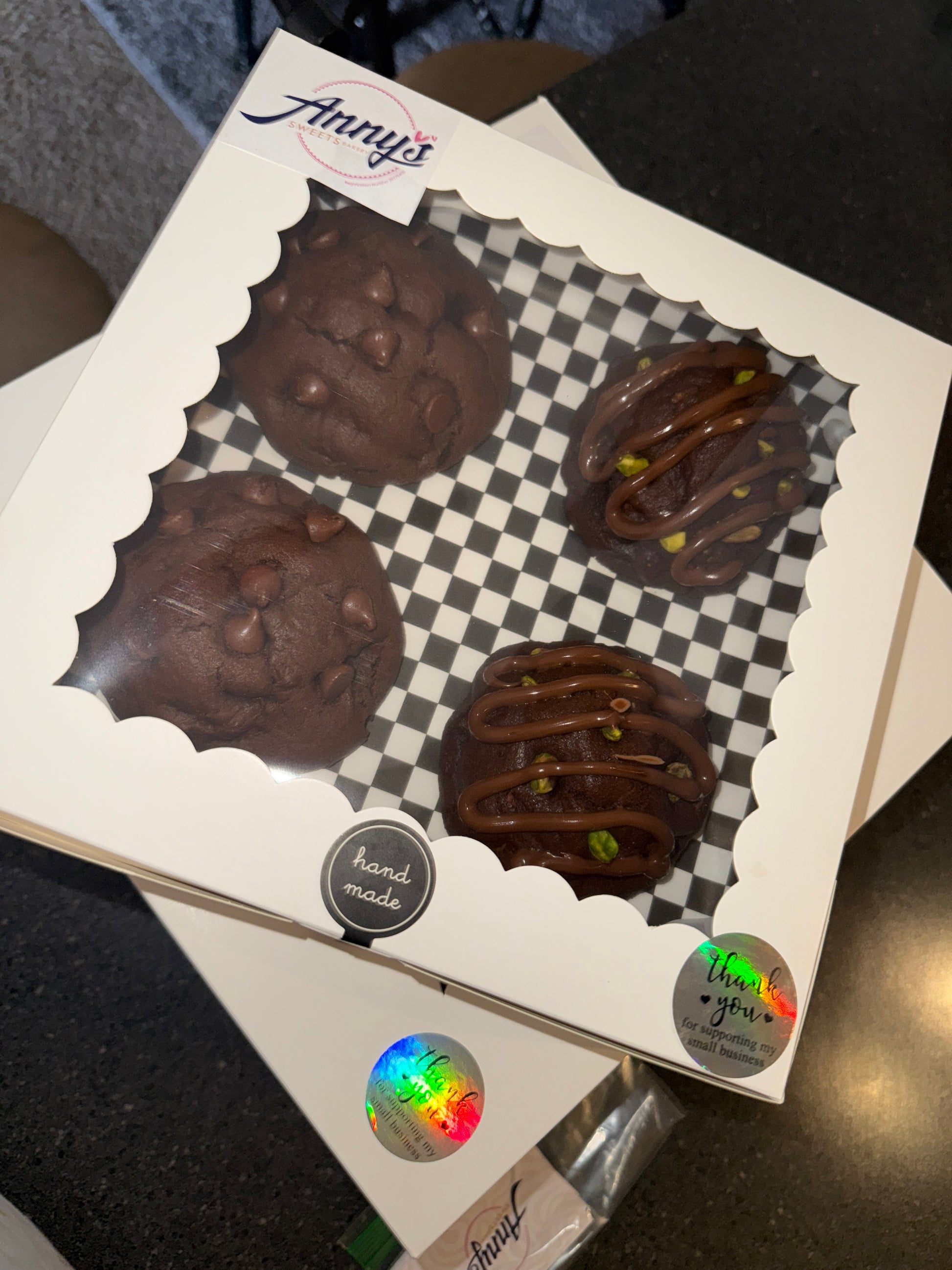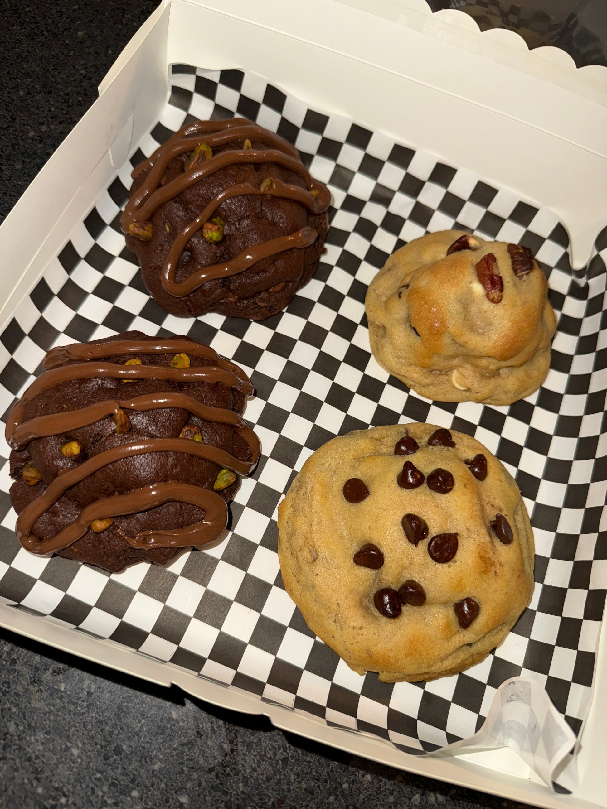 Mix and match your favorite flavors—or stick with one you love. Whether you’re treating yourself or sharing (maybe…), this bundle is made fresh, soft, and full of flavor. Pick any 4 from our signature cookie collection and create your perfect box of sweet happiness.